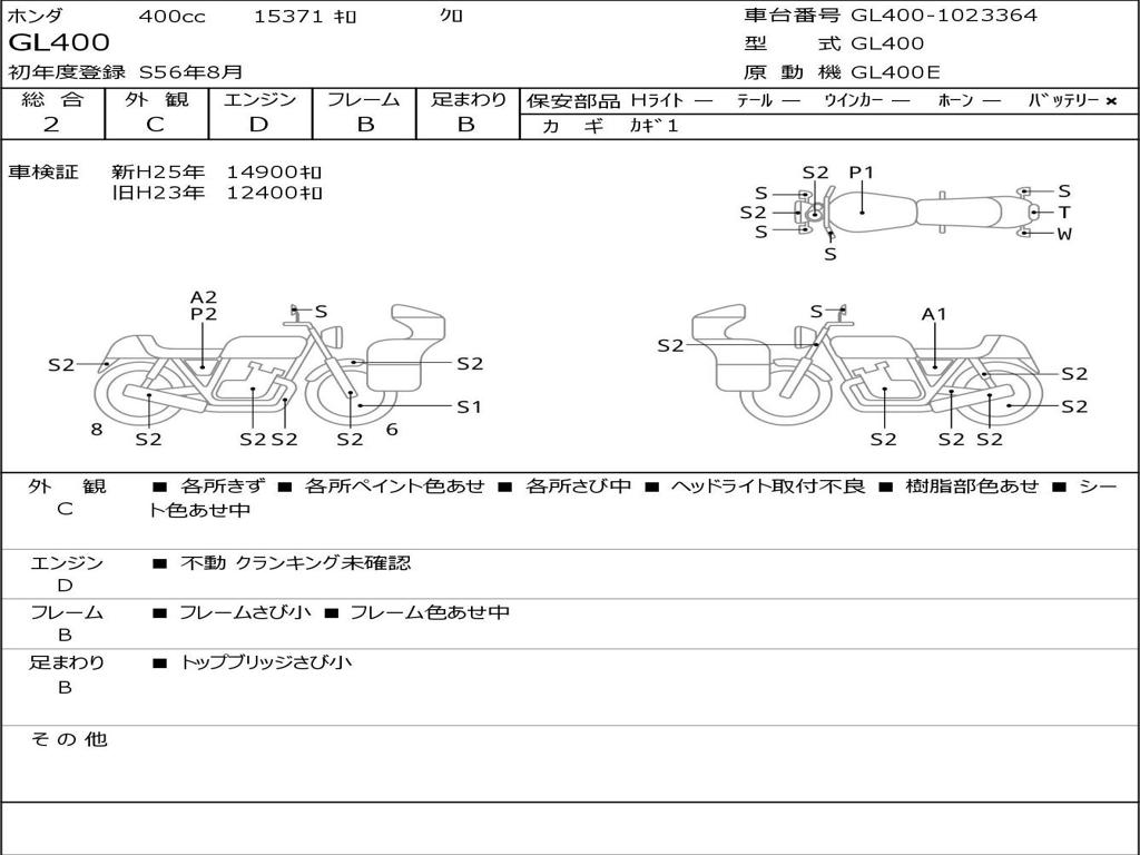 | Номер рамы / VIN | GL400-1023364 |