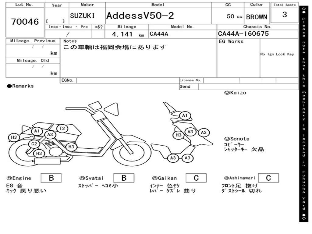 | Номер рамы / VIN | CA44A-160675 |
