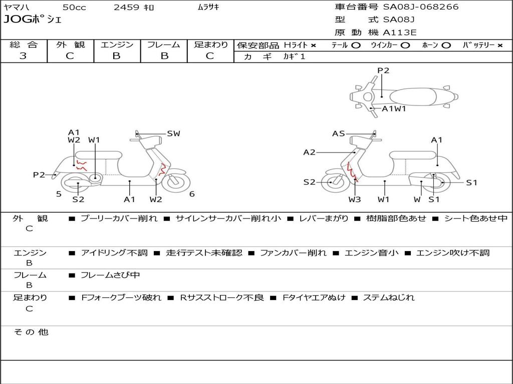 | Номер рамы / VIN | SA08J-068266 |