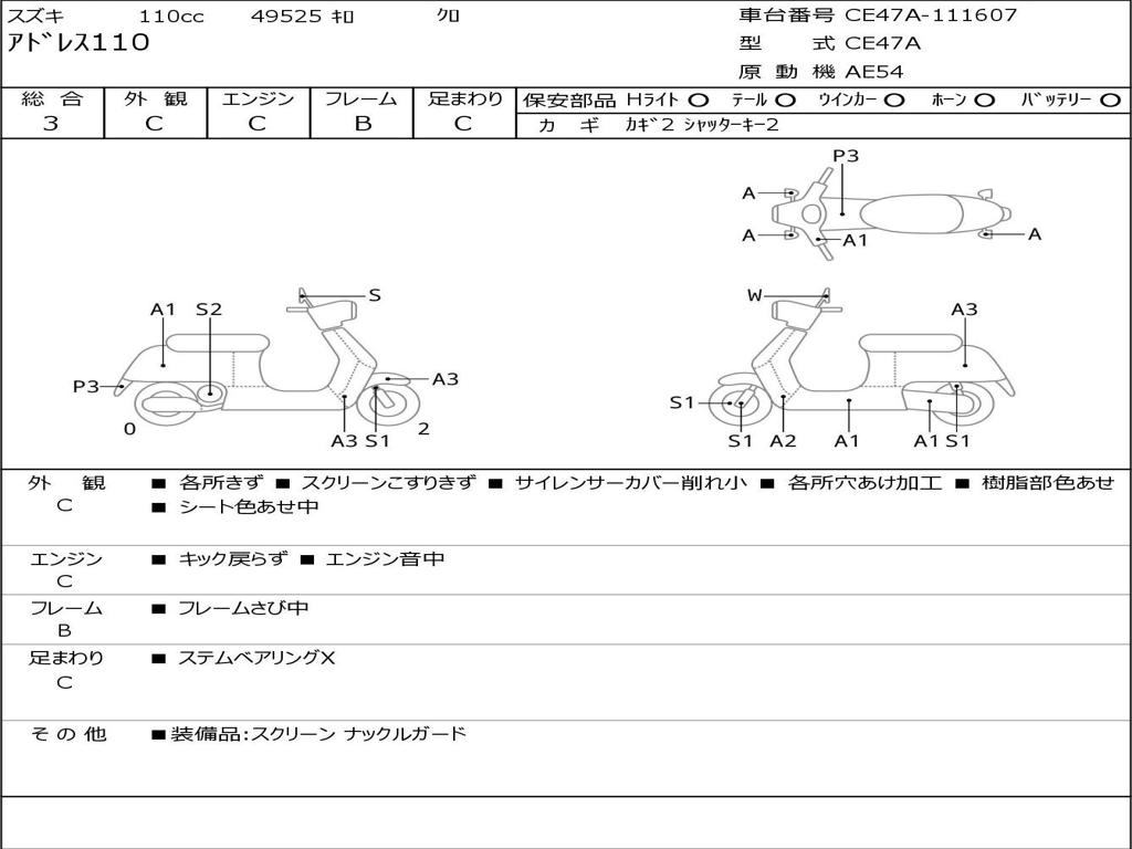| Номер рамы / VIN | CE47A-111607 |