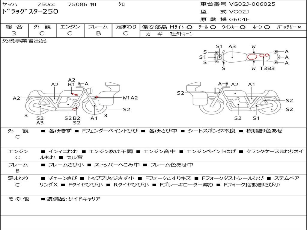 | Номер рамы / VIN | VG02J-006025 |
