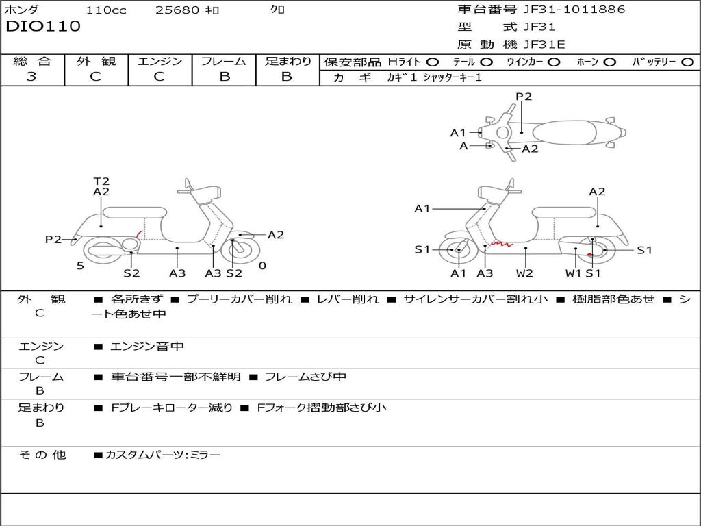 | Номер рамы / VIN | JF31-1011886 |