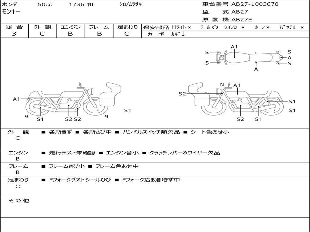 | Номер рамы / VIN | AB27-1003678 |