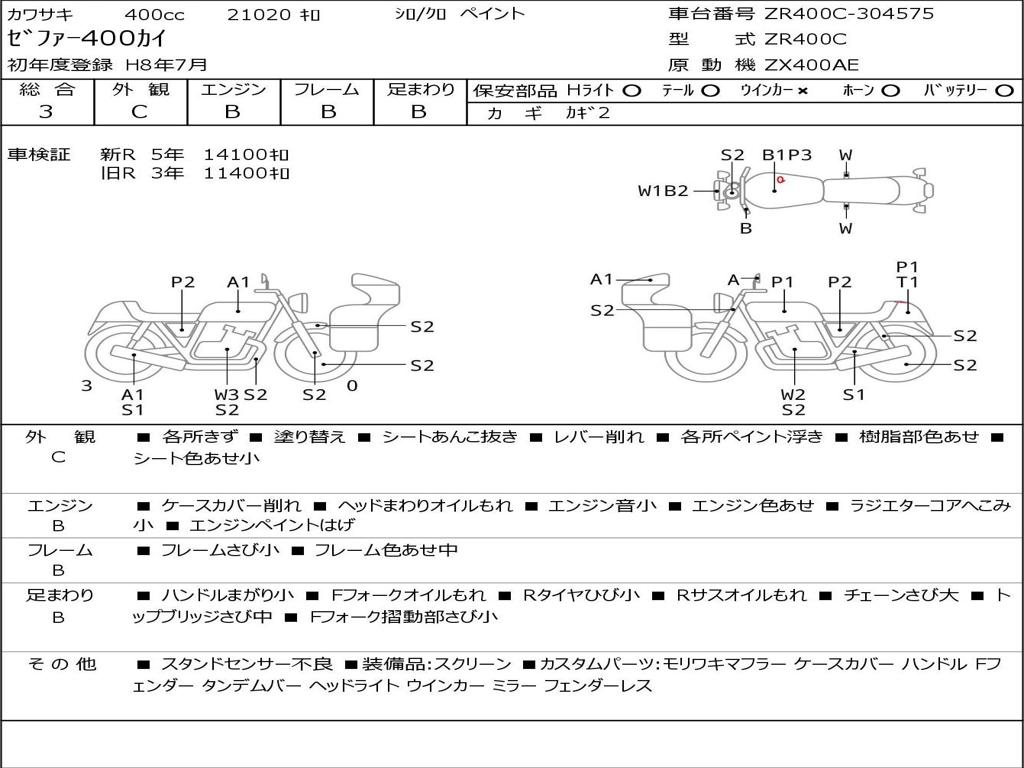 | Номер рамы / VIN | ZR400C-304575 |