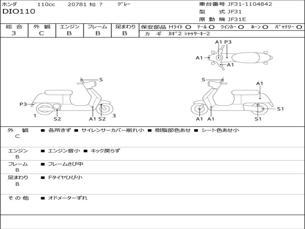 | Номер рамы / VIN | JF31-1104842 |