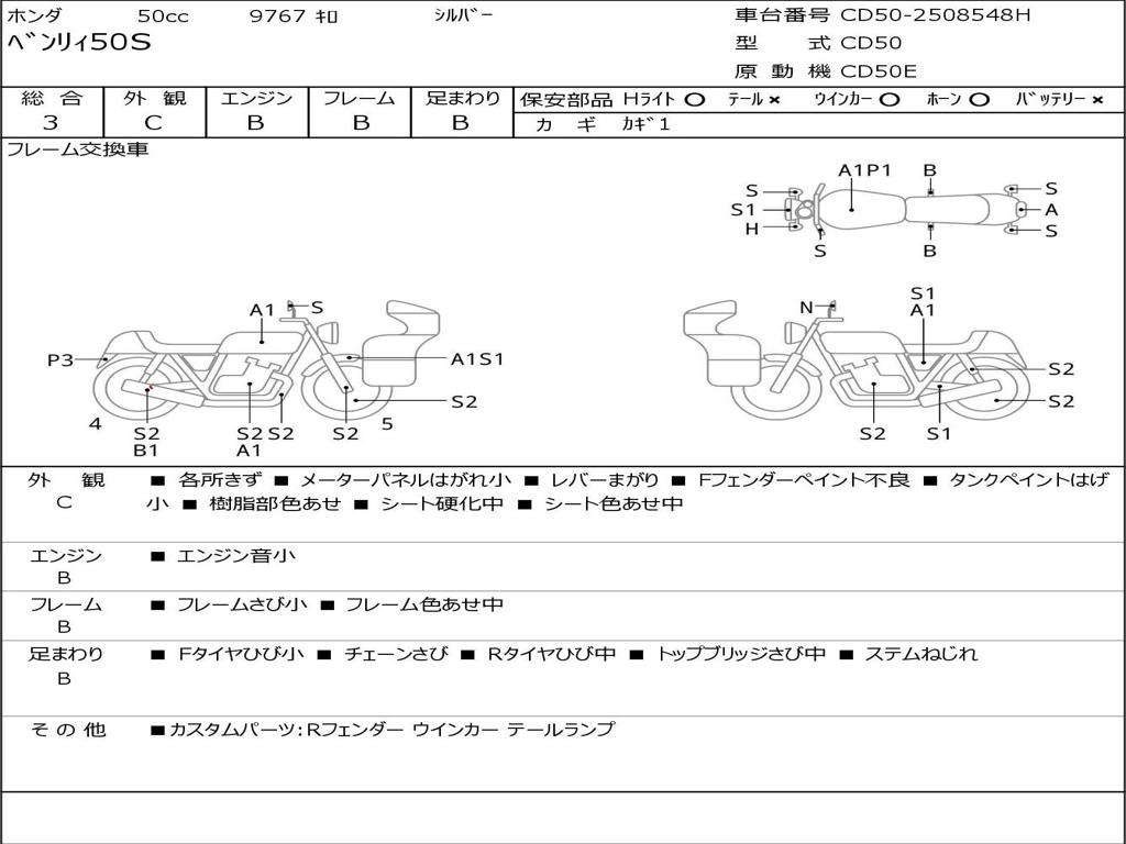 | Номер рамы / VIN | CD50-2508548H |