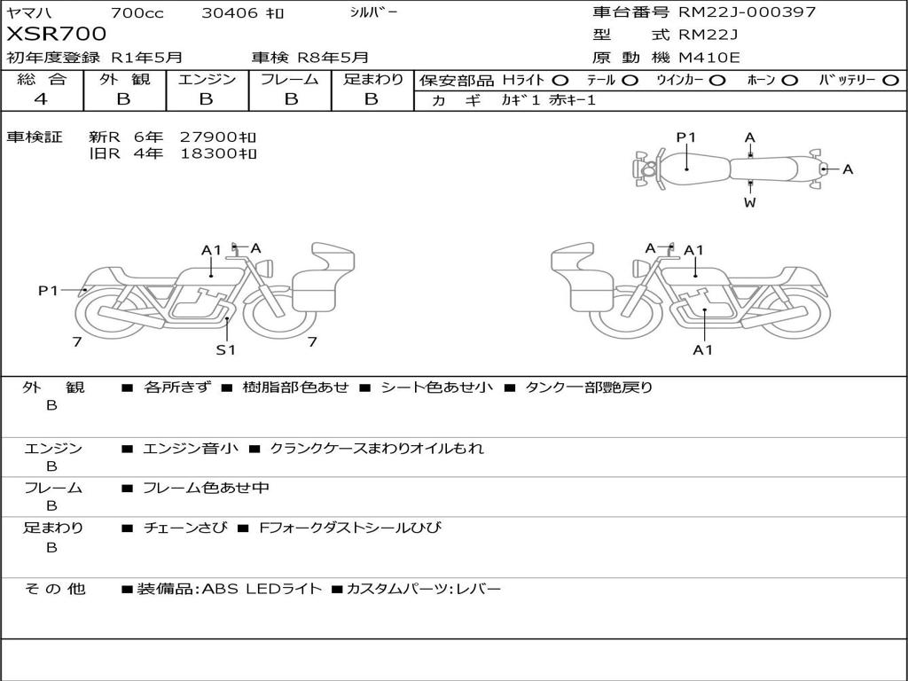 | Номер рамы / VIN | RM22J-000397 |