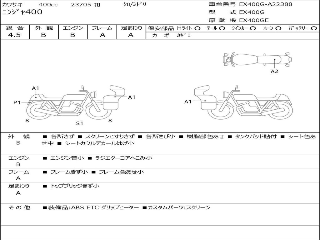 | Номер рамы / VIN | EX400G-A22388 |