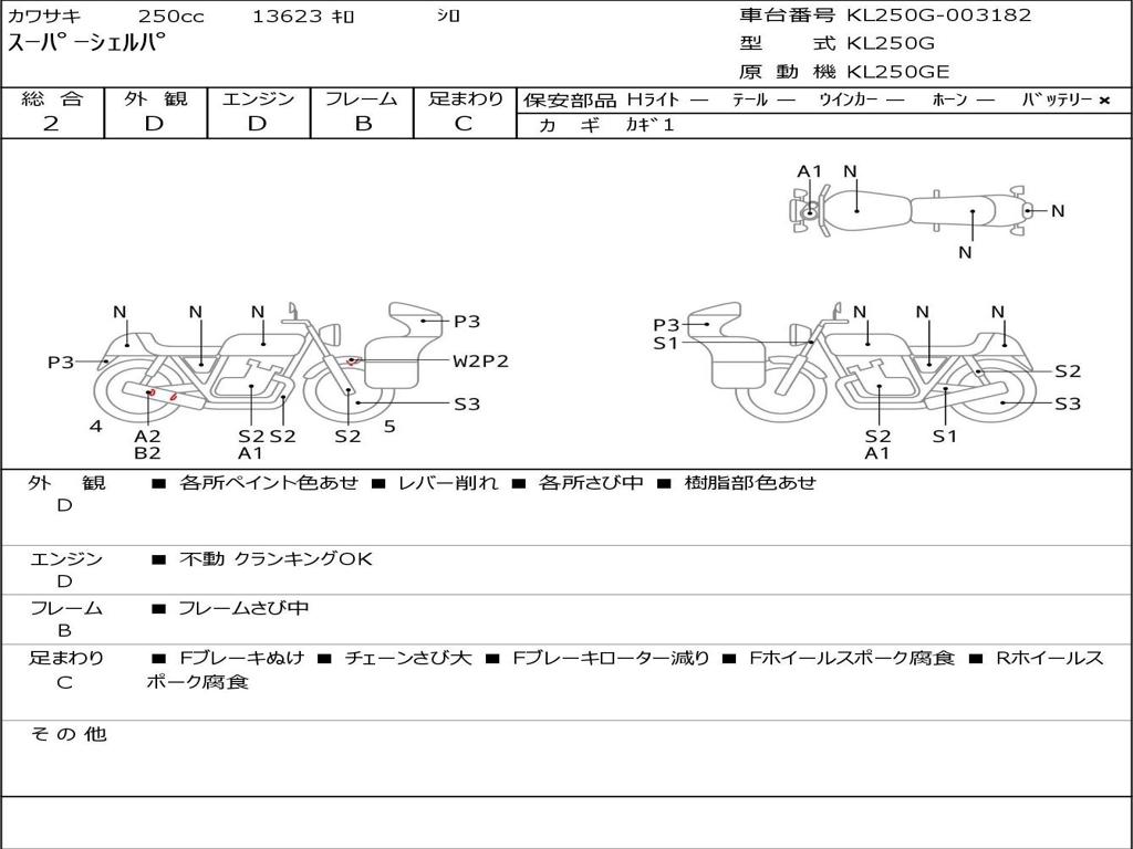 | Номер рамы / VIN | KL250G-003182 |