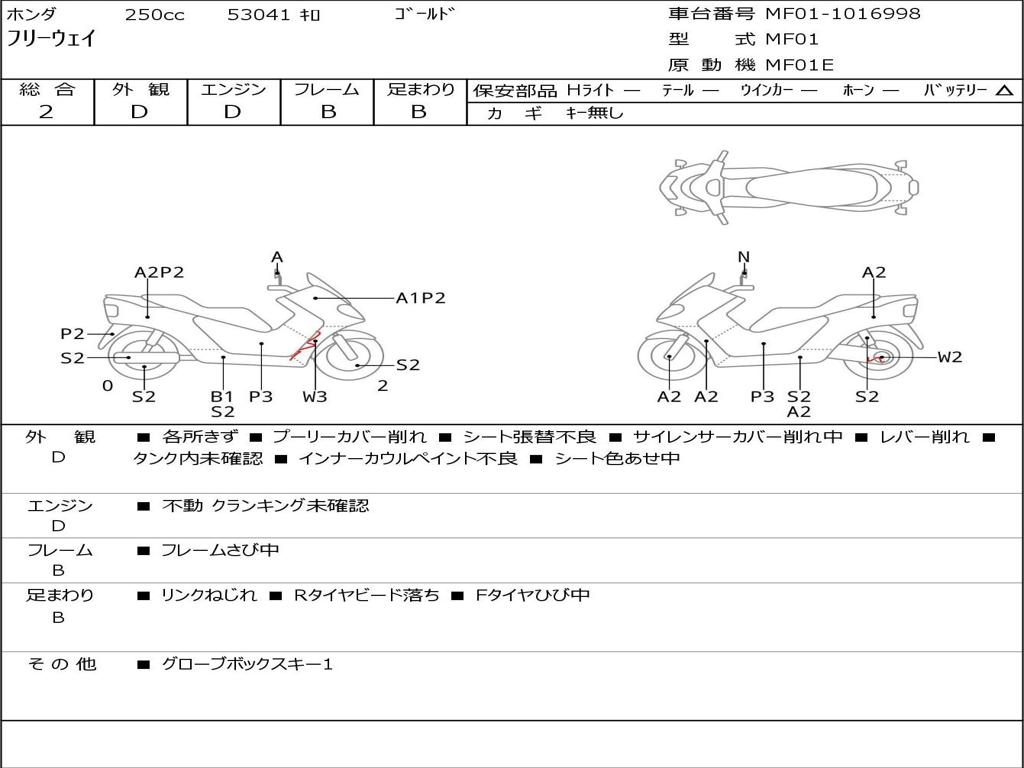 | Номер рамы / VIN | MF01-1016998 |
