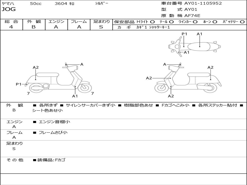 | Номер рамы / VIN | AY01-1105952 |