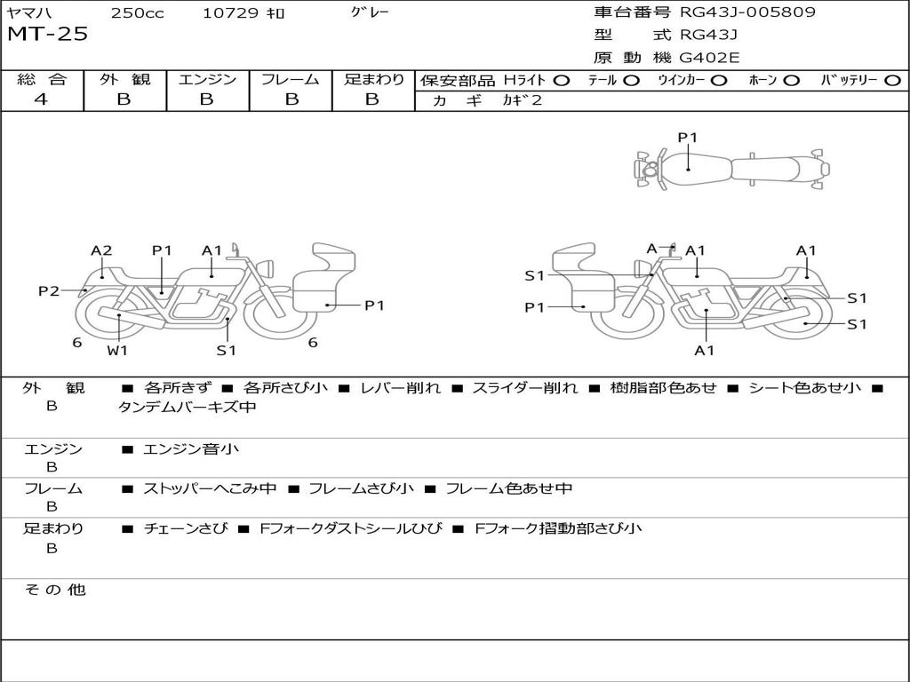 | Номер рамы / VIN | RG43J-005809 |