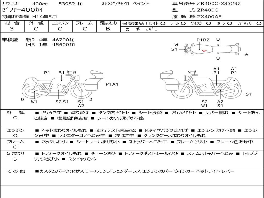 | Номер рамы / VIN | ZR400C-333292 |