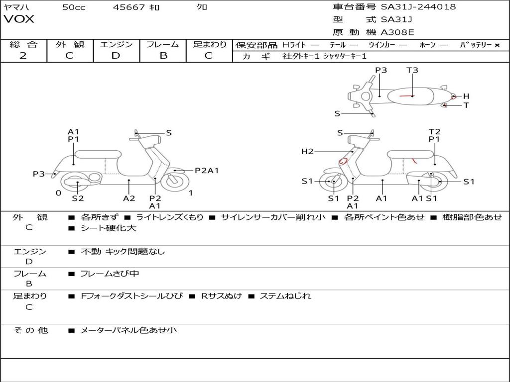 | Номер рамы / VIN | SA31J-244018 |