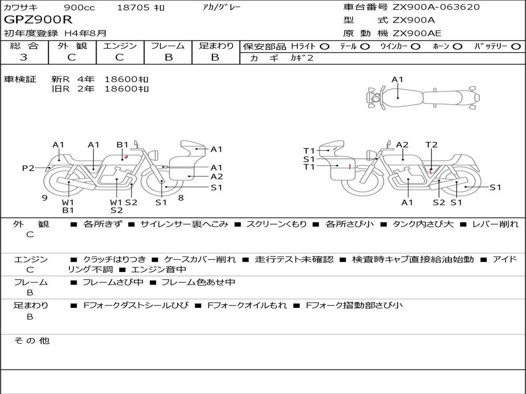 | Номер рамы / VIN | ZX900A-063620 |