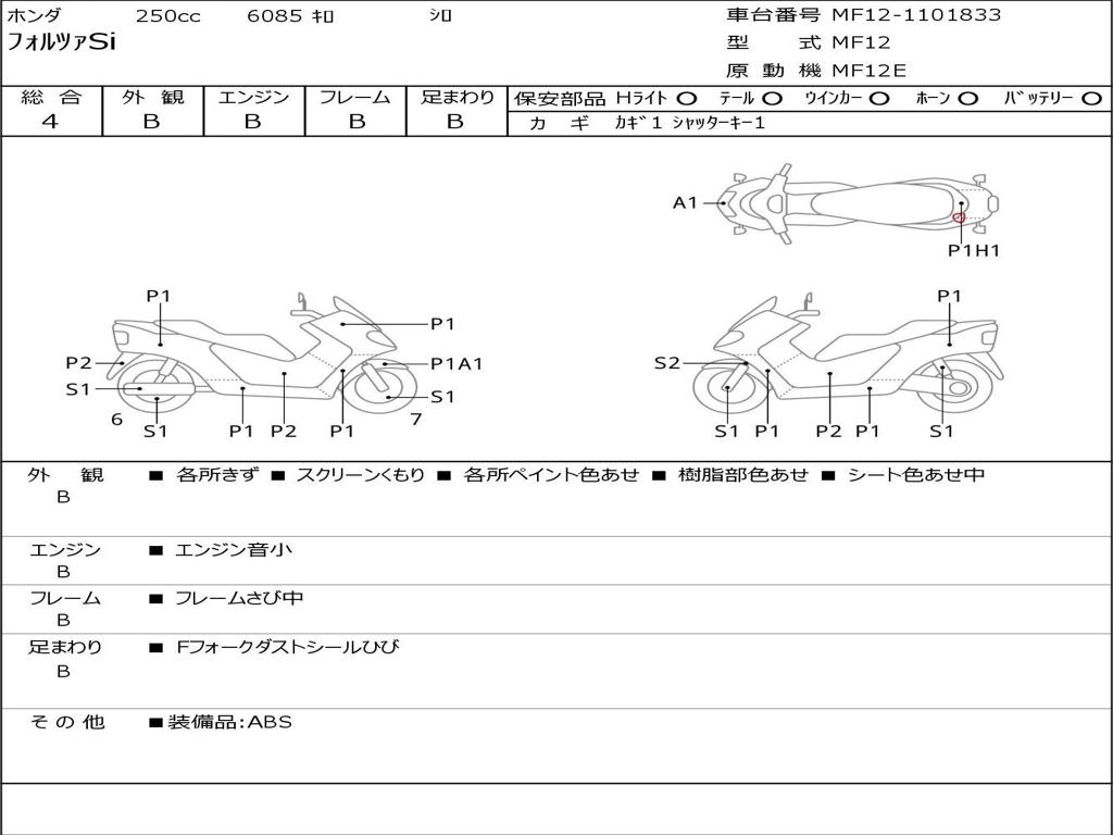 | Номер рамы / VIN | MF12-1101833 |