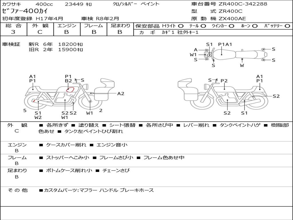 | Номер рамы / VIN | ZR400C-342288 |
