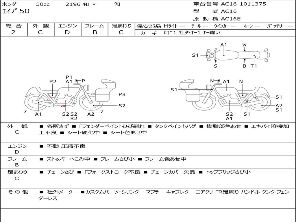 | Номер рамы / VIN | AC16-1011375 |