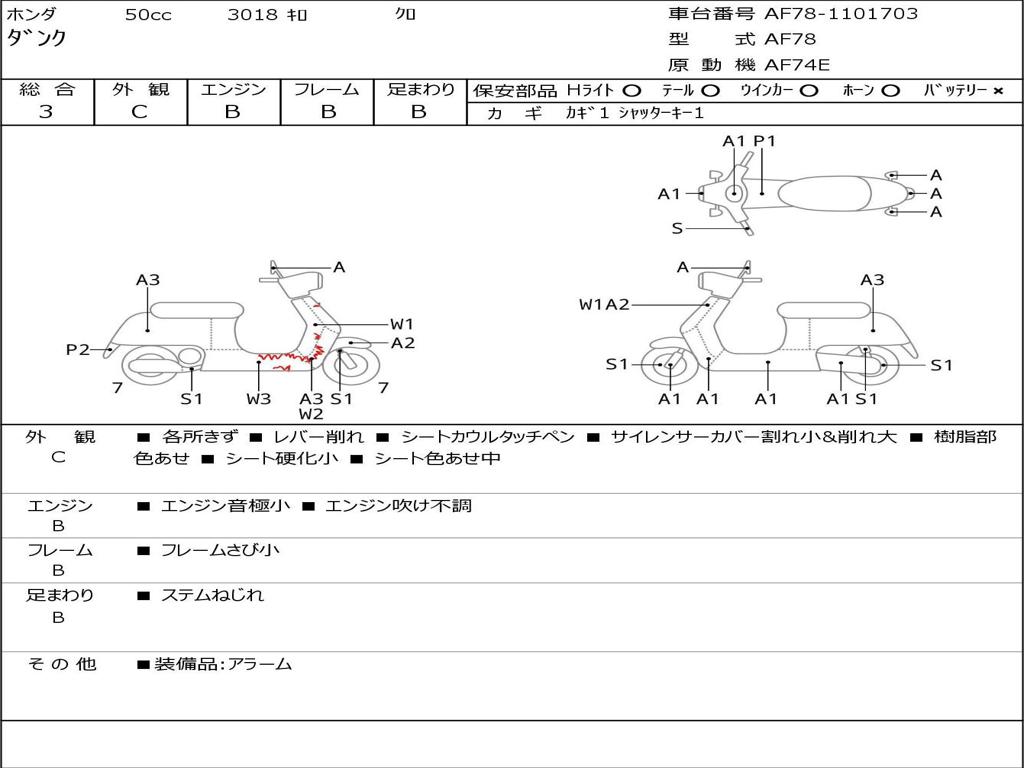 | Номер рамы / VIN | AF78-1101703 |