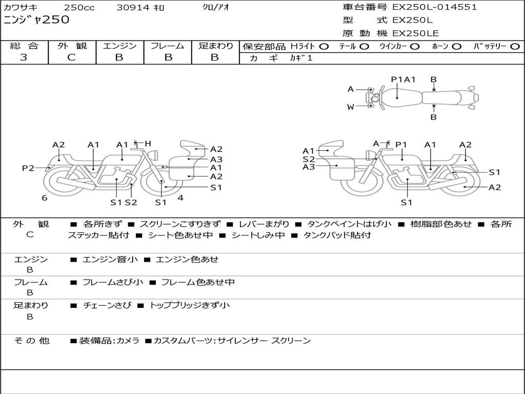 | Номер рамы / VIN | EX250L-014551 |