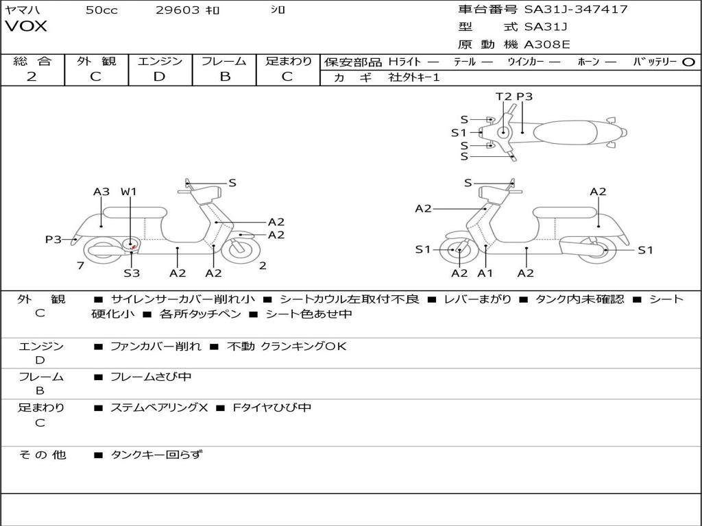 | Номер рамы / VIN | SA31J-347417 |