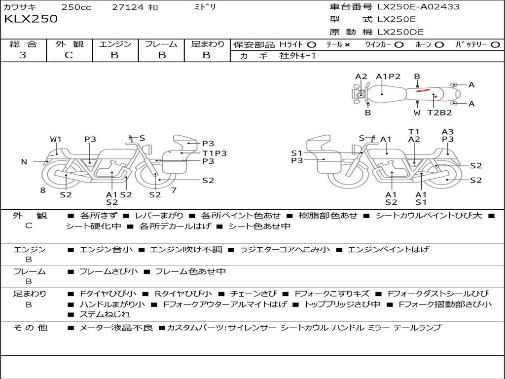 | Номер рамы / VIN | LX250E-A02433 |