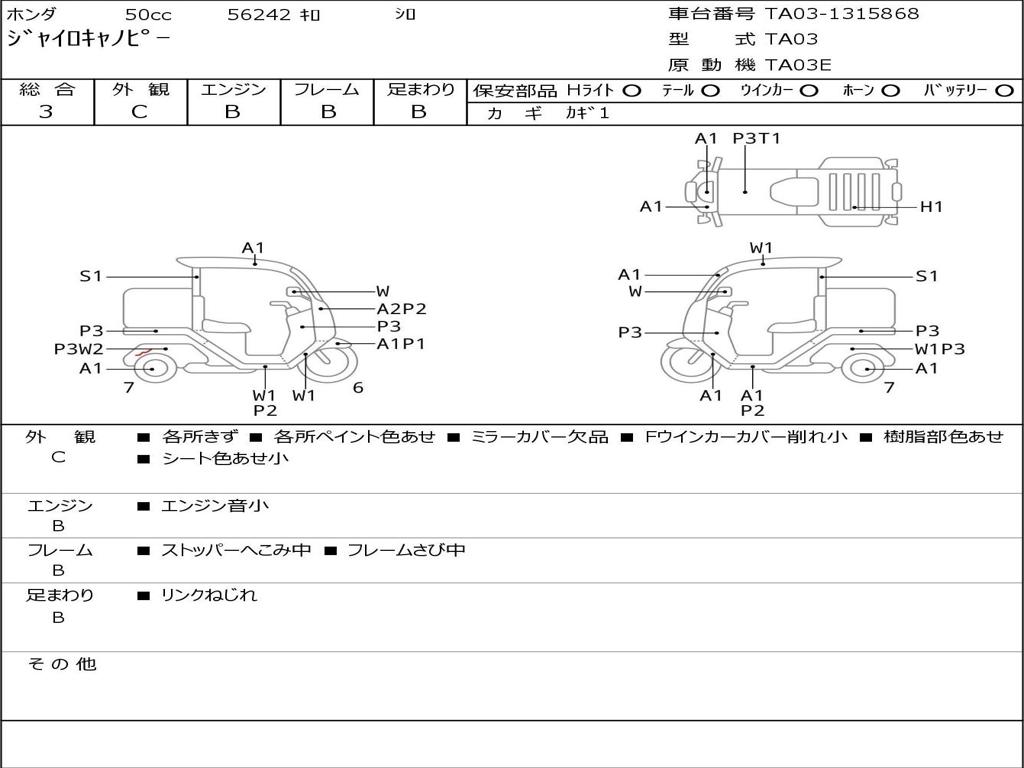 | Номер рамы / VIN | TA03-1315868 |