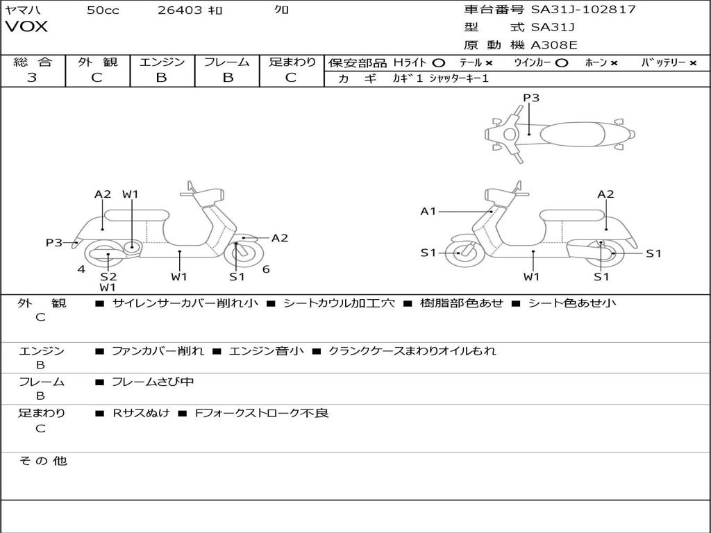| Номер рамы / VIN | SA31J-102817 |