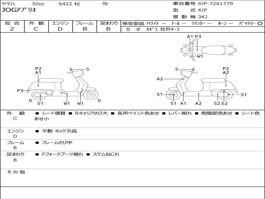 | Номер рамы / VIN | 4JP-7261779 |