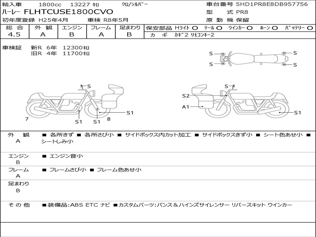 | Номер рамы / VIN | 5HD1PR8E8DB957756 |