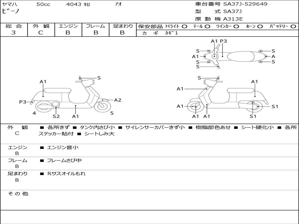 | Номер рамы / VIN | SA37J-529649 |