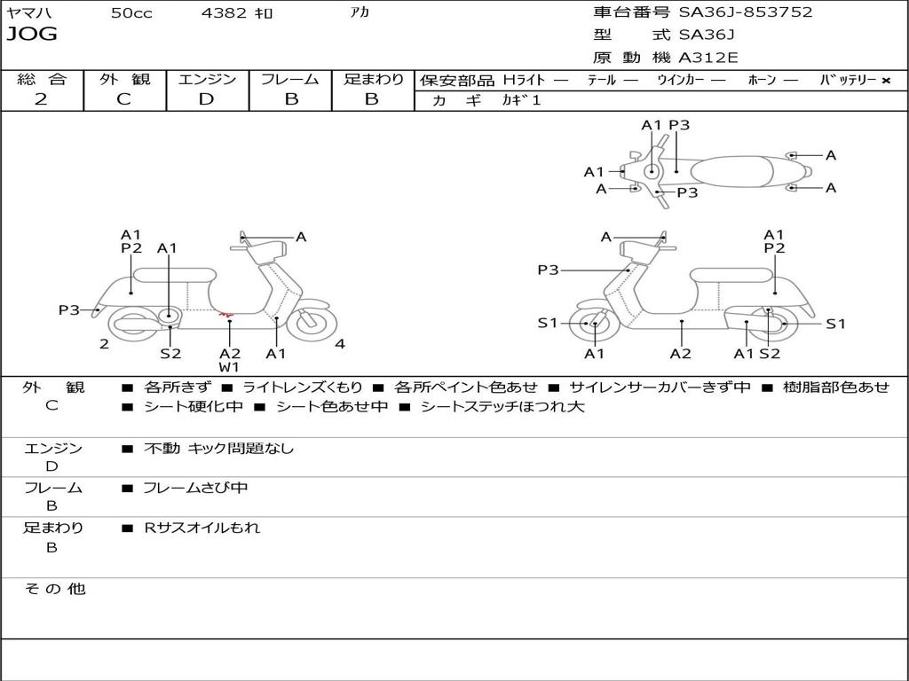| Номер рамы / VIN | SA36J-853752 |