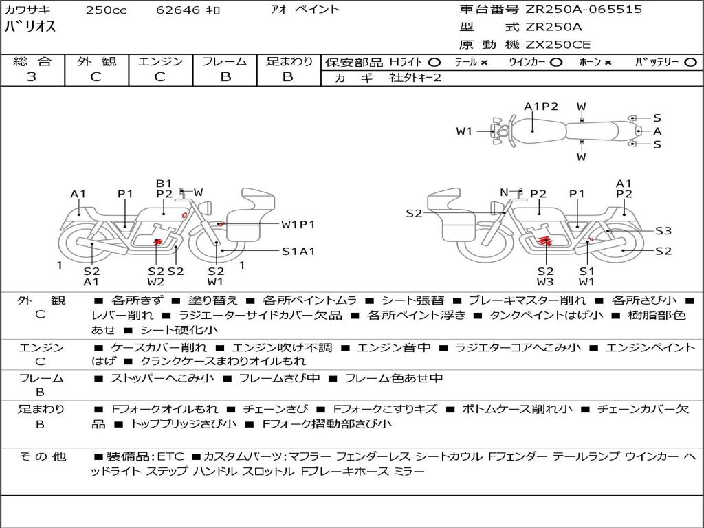 | Номер рамы / VIN | ZR250A-065515 |