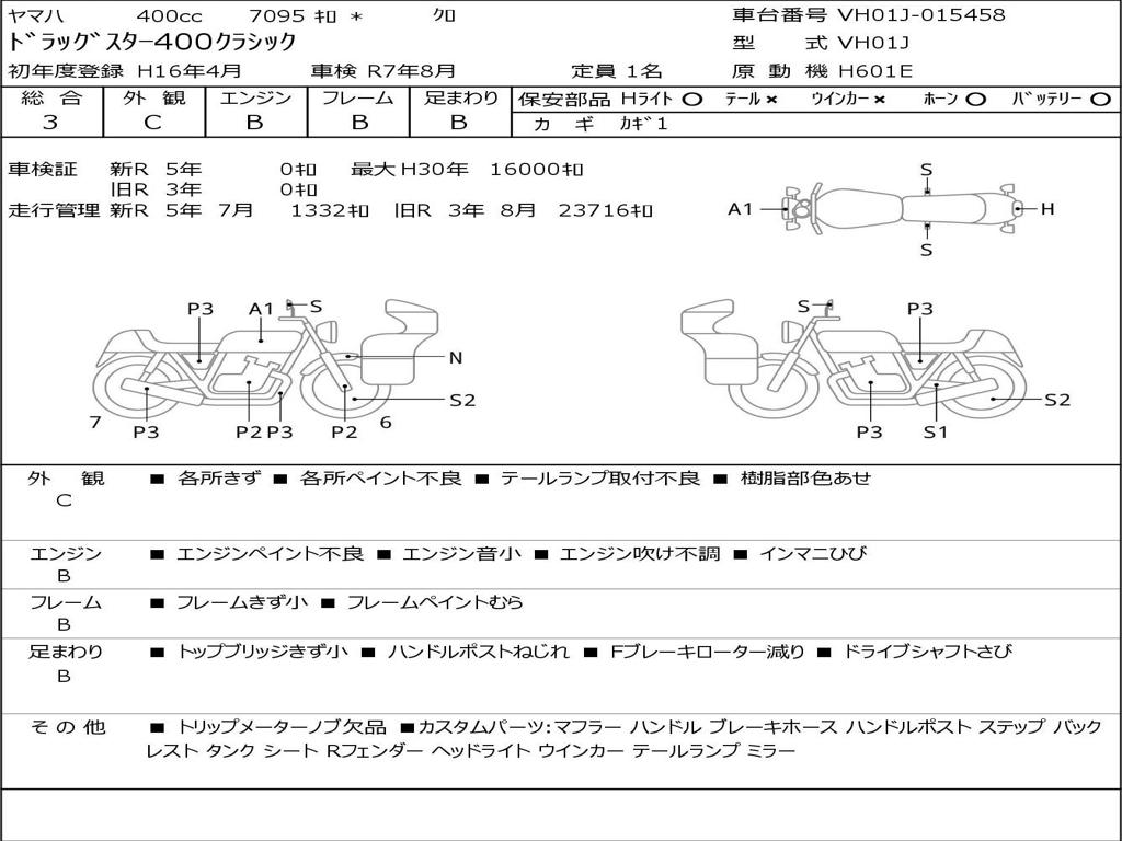 | Номер рамы / VIN | VH01J-015458 |