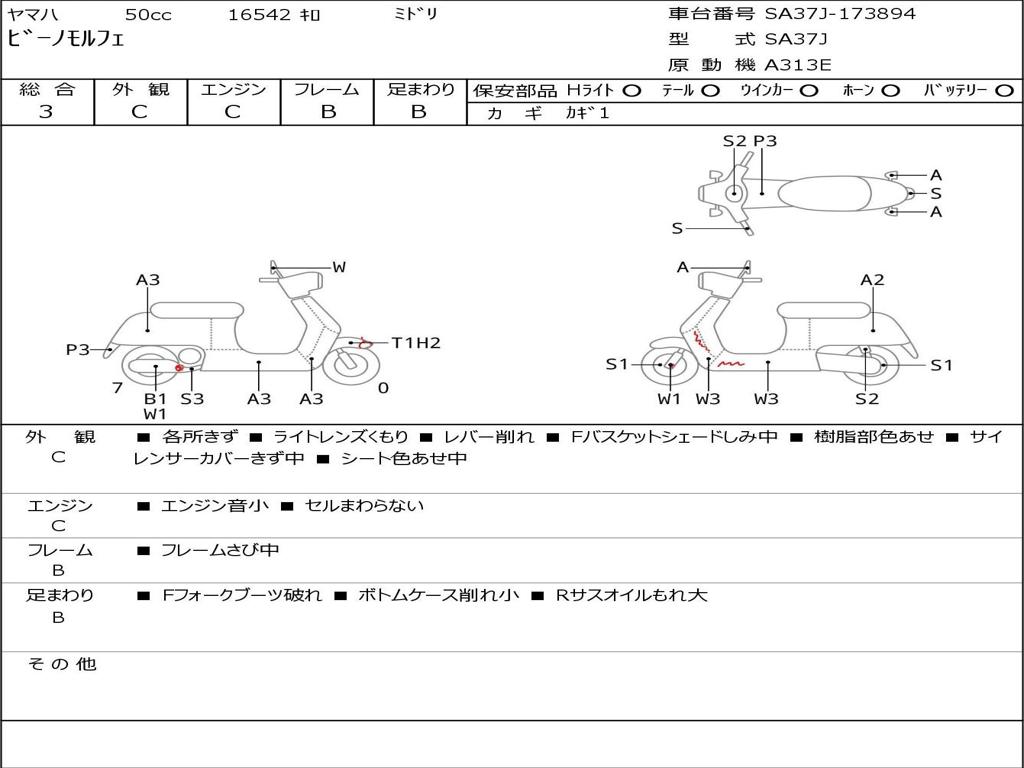 | Номер рамы / VIN | SA37J-173894 |