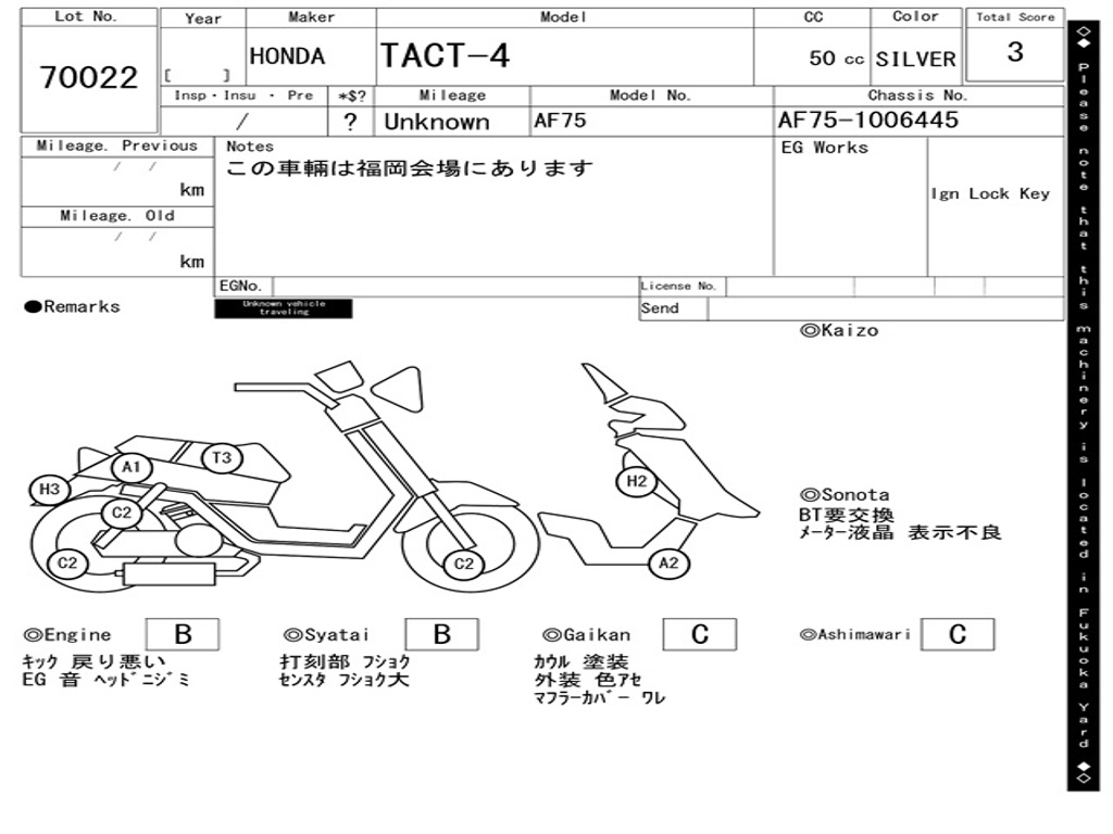 | Номер рамы / VIN | AF75-1006445 |