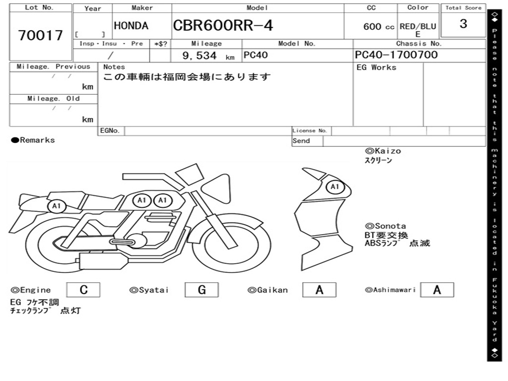 | Номер рамы / VIN | PC40-1700700 |