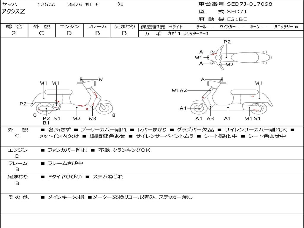 | Номер рамы / VIN | SED7J-017098 |