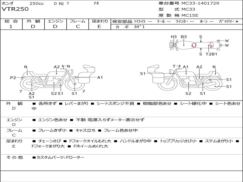 | Номер рамы / VIN | MC33-1401729 |