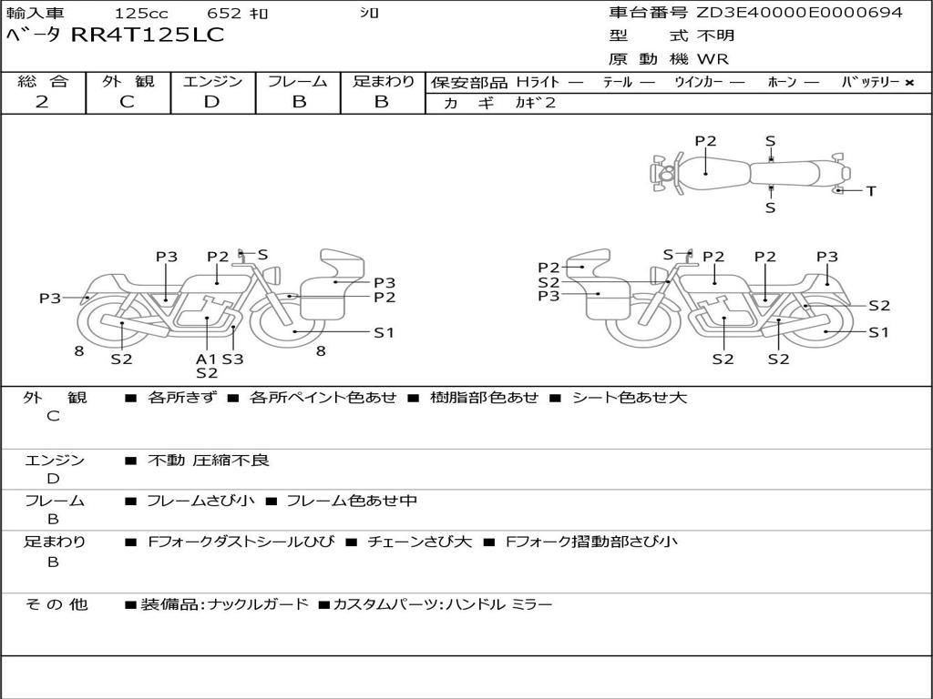 | Номер рамы / VIN | ZD3E40000E0000694 |