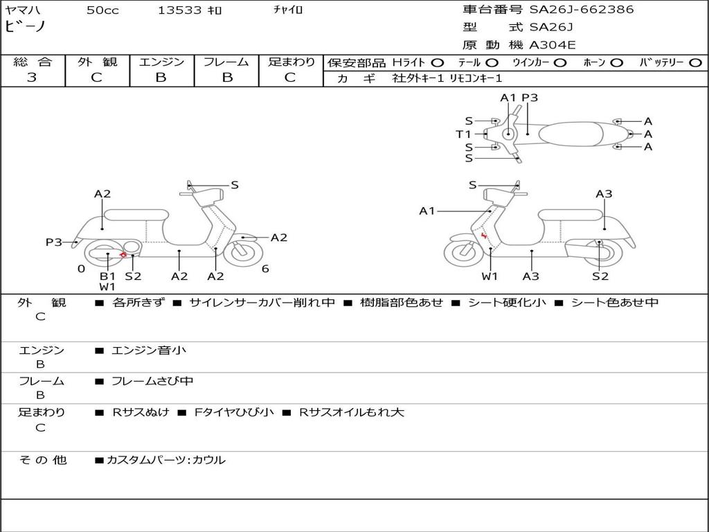 | Номер рамы / VIN | SA26J-662386 |