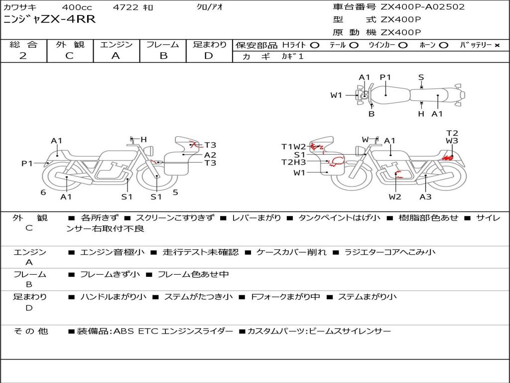 | Номер рамы / VIN | ZX400P-A02502 |