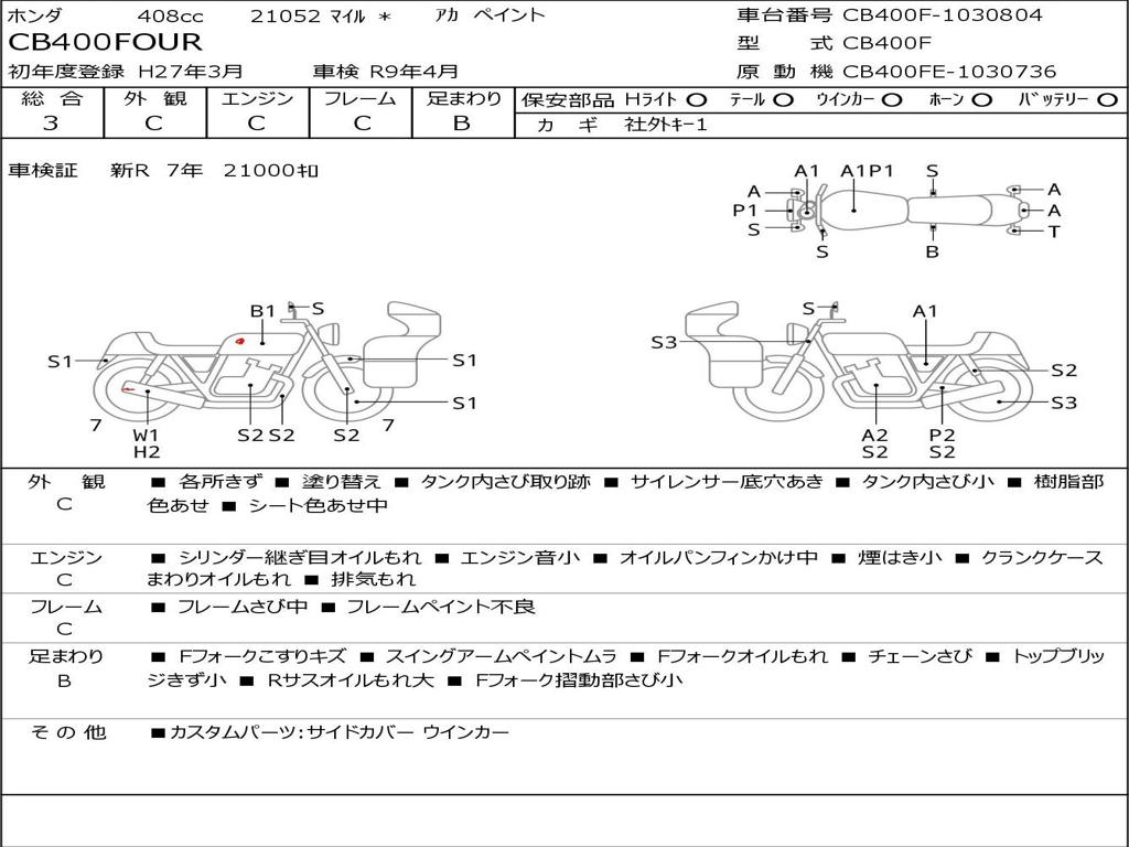 | Номер рамы / VIN | CB400F-1030804 |