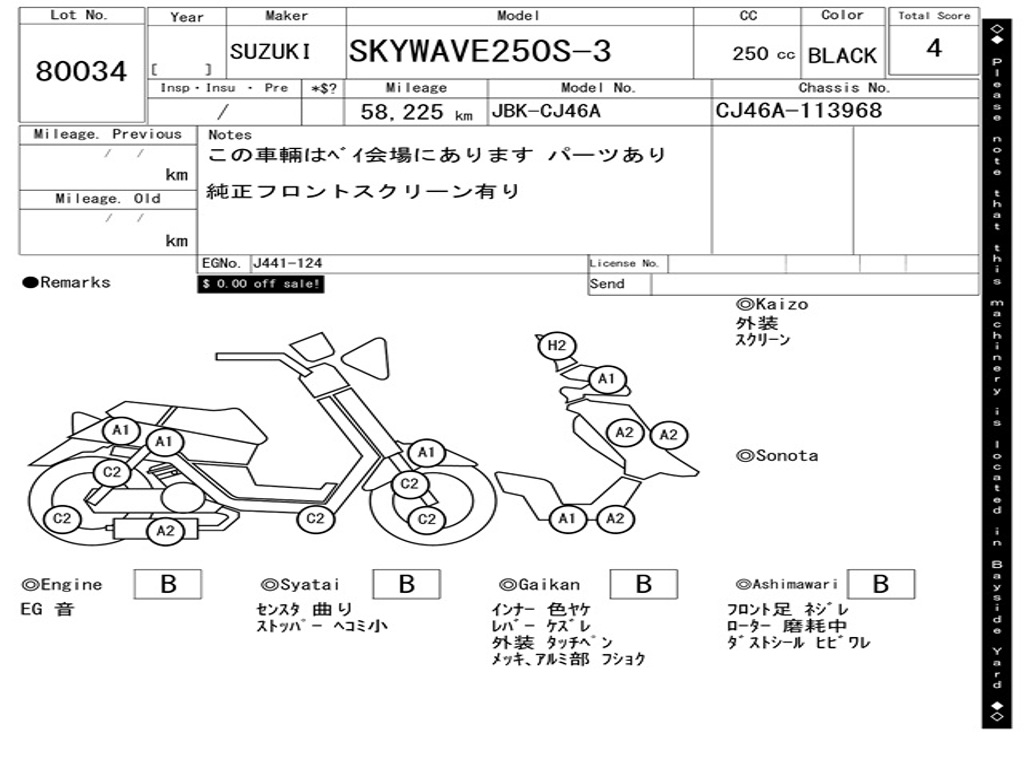 | Номер рамы / VIN | CJ46A-113968 |