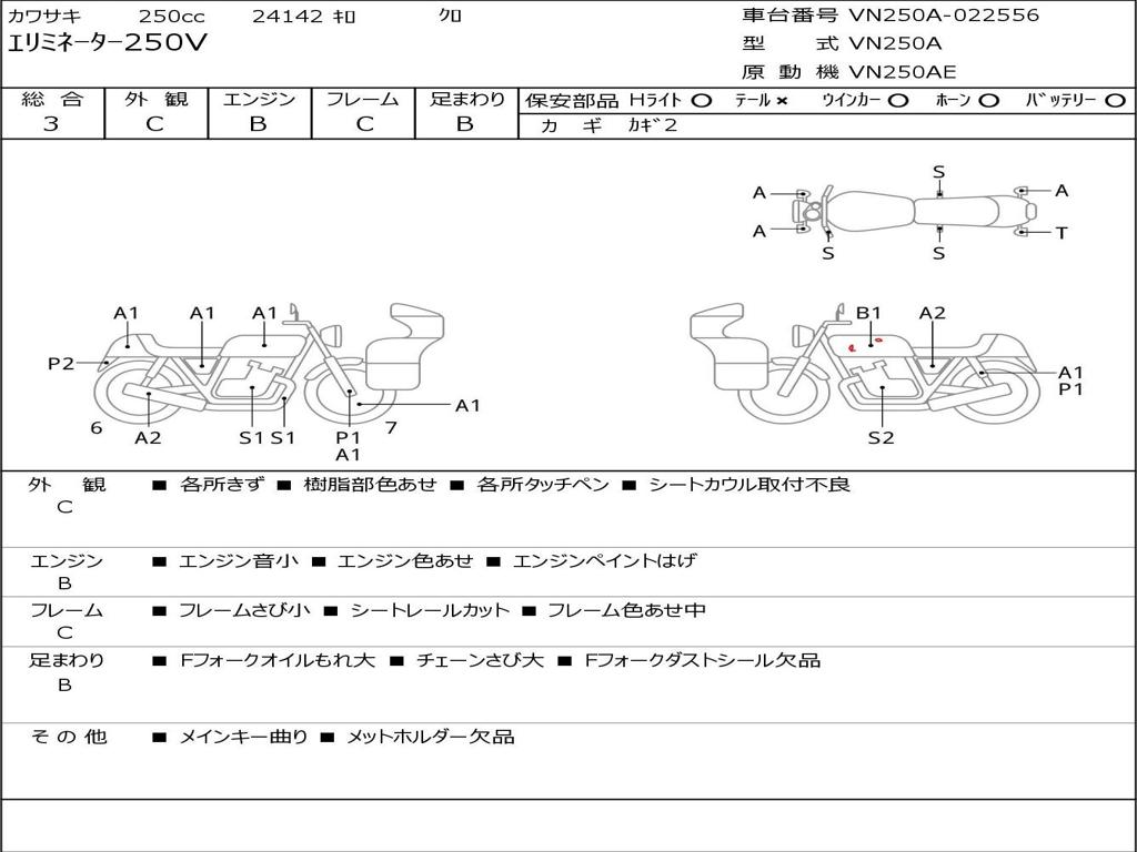 | Номер рамы / VIN | VN250A-022556 |