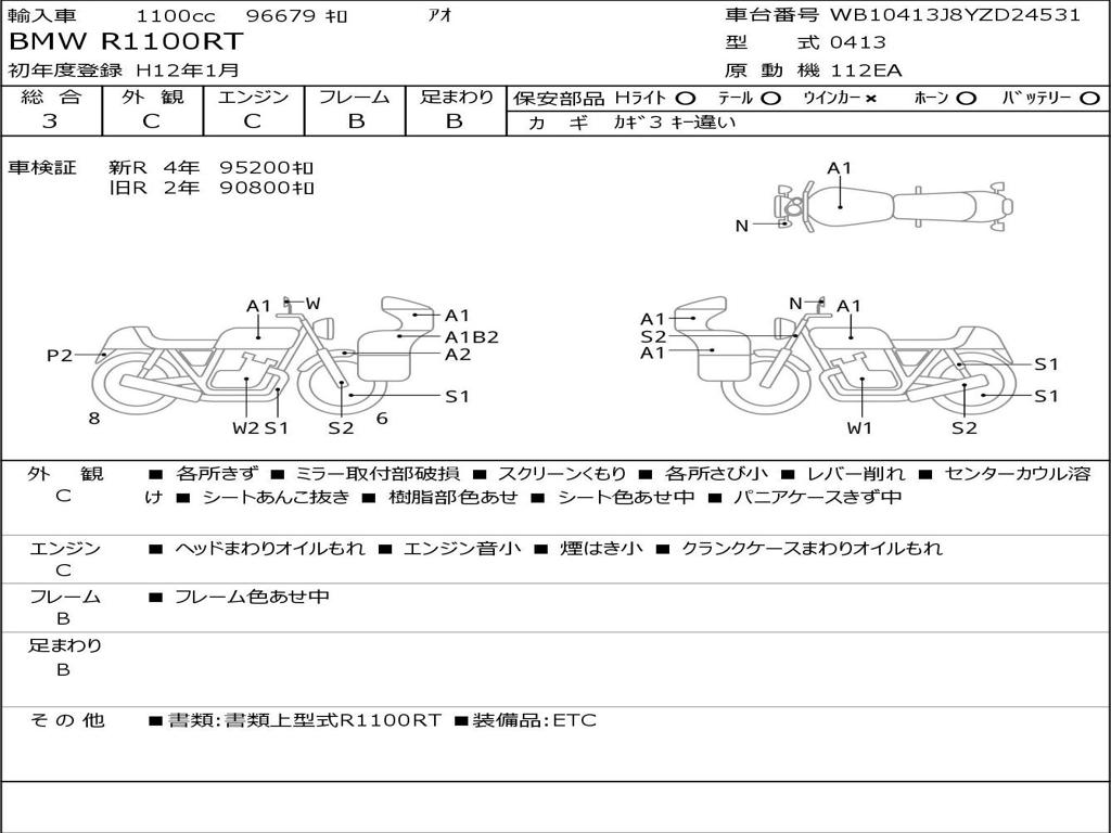 | Номер рамы / VIN | WB10413J8YZD24531 |