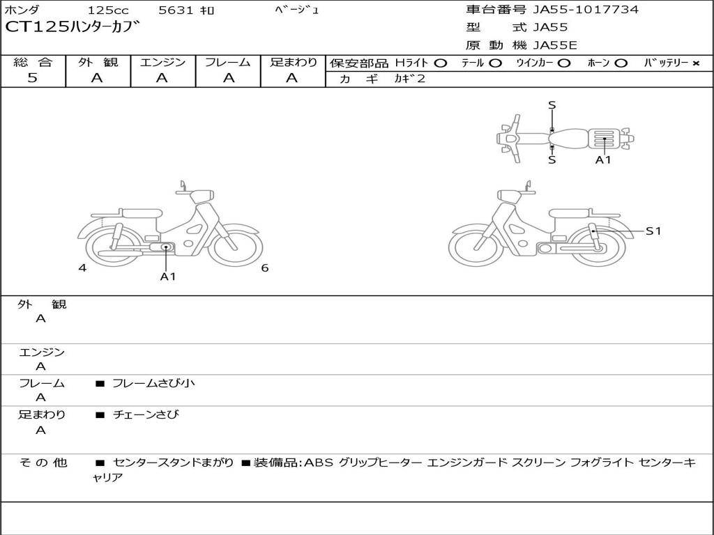 | Номер рамы / VIN | JA55-1017734 |