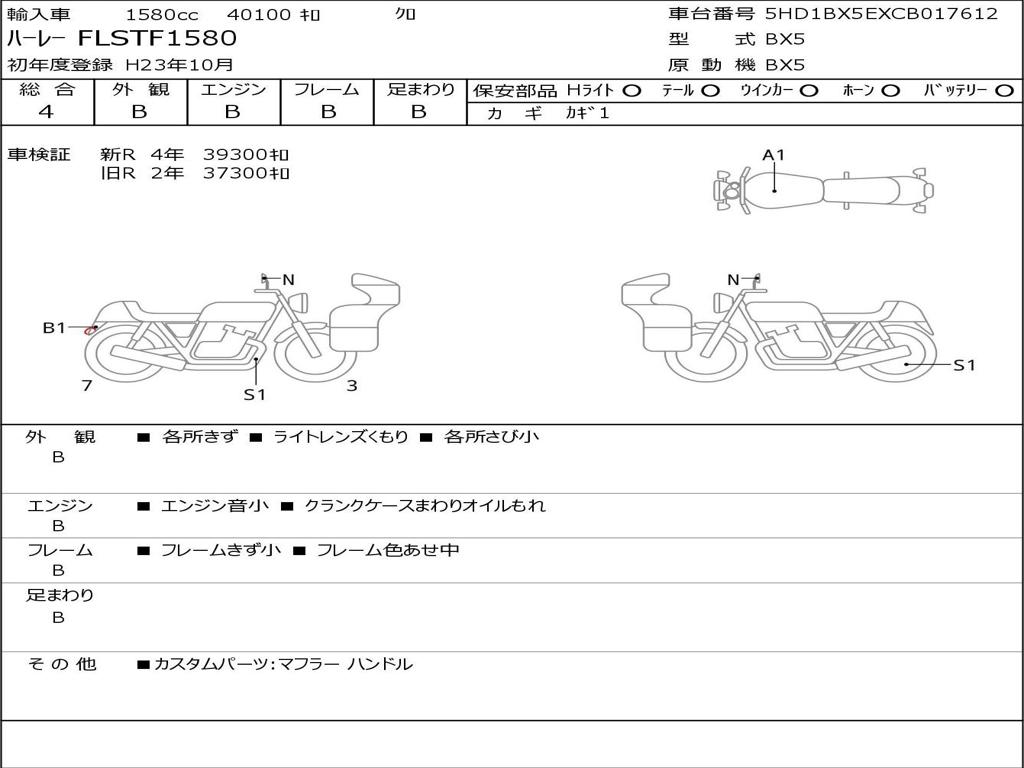 | Номер рамы / VIN | 5HD1BX5EXCB017612 |
