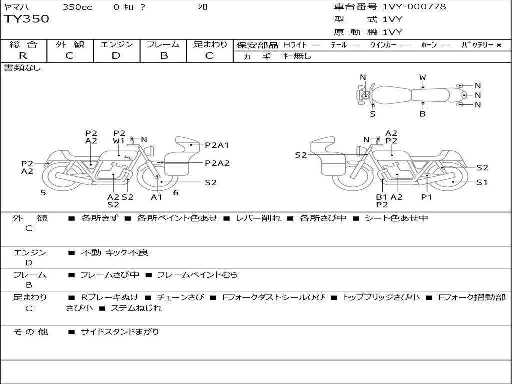 | Номер рамы / VIN | 1VY-000778 |