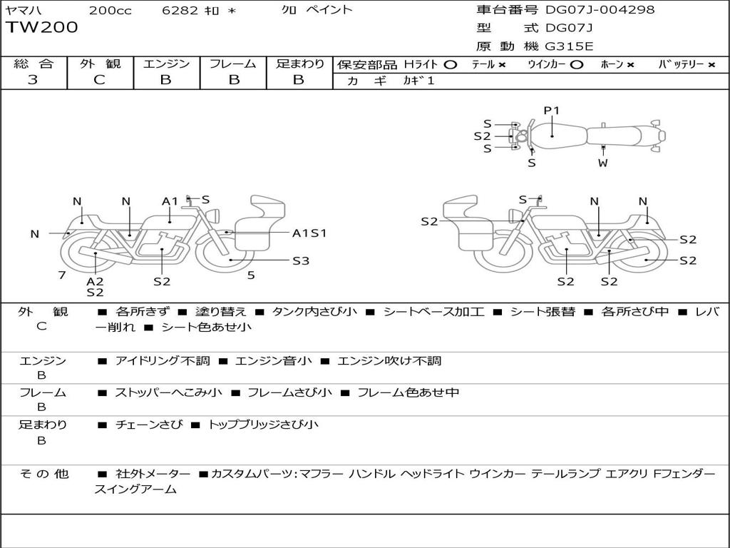 | Номер рамы / VIN | DG07J-004298 |